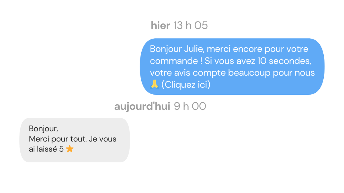 Vos clients reçoivent un message personnalisé par SMS avec le lien vers le formulaire d'avis de votre choix.